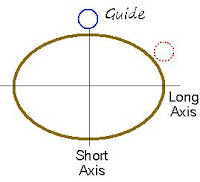 The whole thing about rod spline is about deciding what side of the blank to place the guides on. If you think of the cross section of a rod, fiberglass or graphite, being oval shaped instead of round, you can visualize what happens when it is bent. The rod will want to bend in the direction of the Short Axis. Place the guides on the Long Axis and the rod will be unstable. It will insist on bending to one side or the other toward the Short Axis. The same is true if the guides are located off axis like the dotted red guide. Guides not on or opposite the spline will cause a twisting stress in the rod and a wave in the line as the rod vibrates during the cast. The wave will decrease your accuracy and distance.